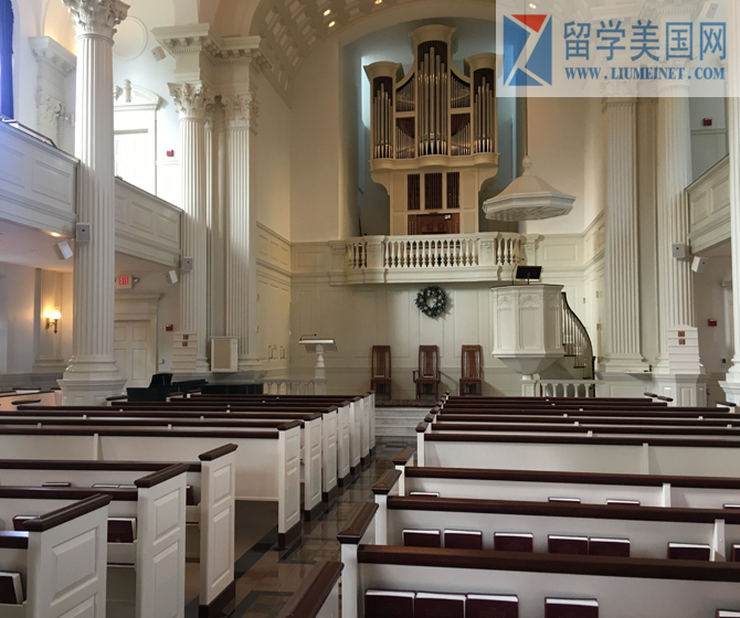 学校中间有一个Chapel,当学生遇到不开心的事情,可以去礼拜。学校的音乐和艺术都非常强,学校招生楼里墙上全部是雕刻的作品。秋天参观这所学校校园,校园到处充满绿色,生机勃勃,更多的感慨,能够就读这所学校的学生们太幸福了。