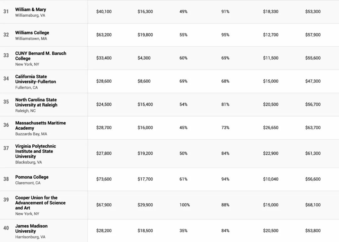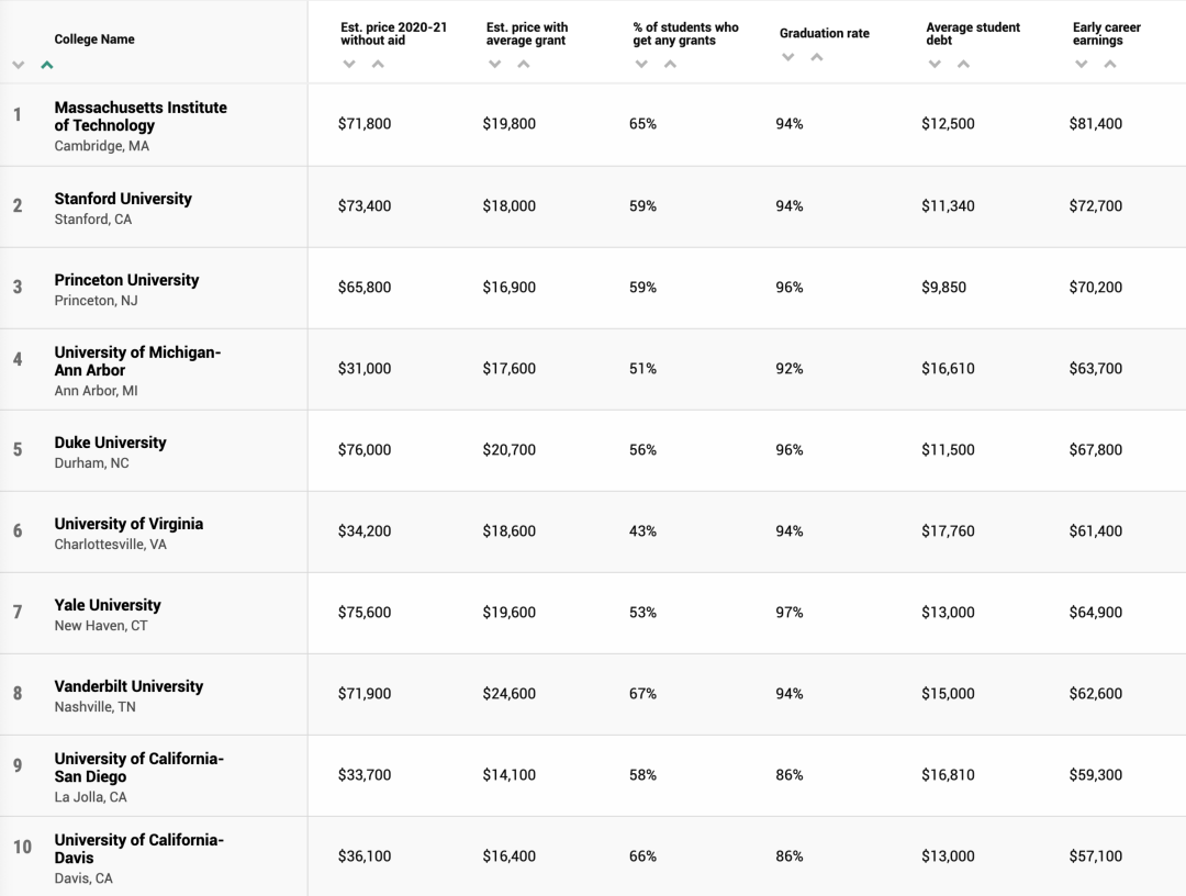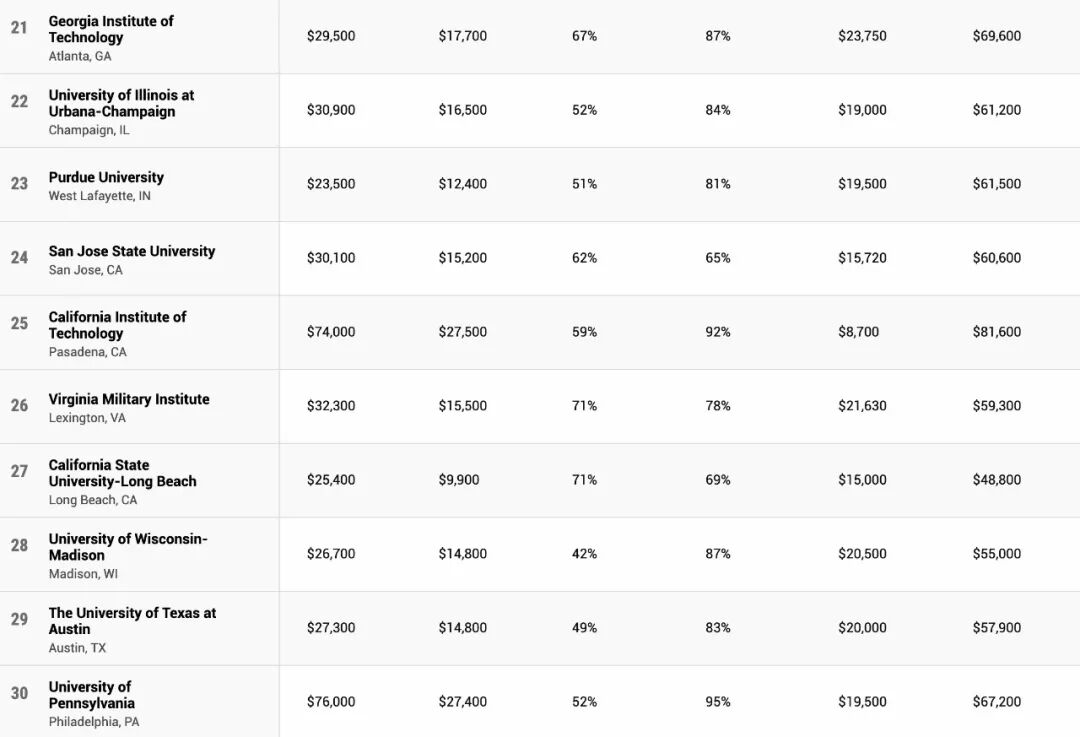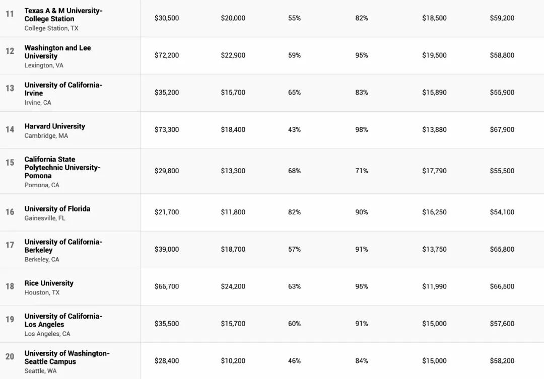 这个排名以讨论大学价值为中心,权衡学位成本与潜在收益之间的关系,“性价比”才是王道。