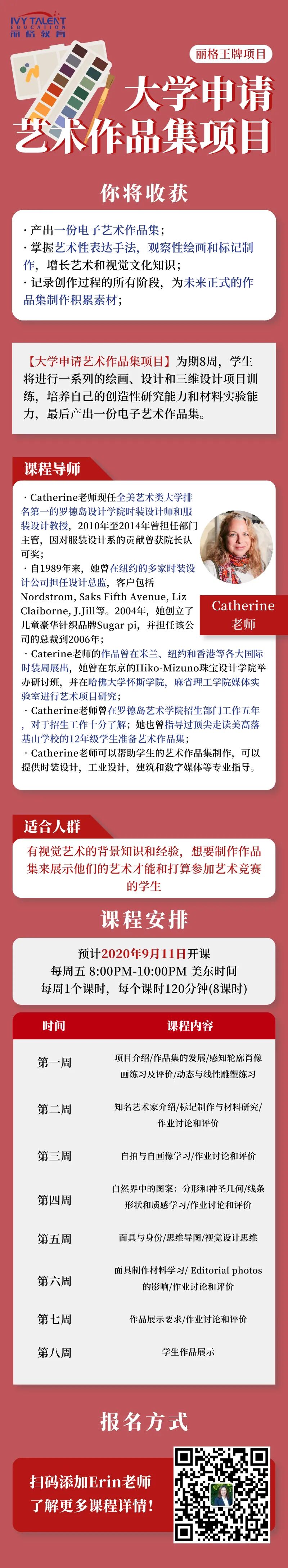 丽格教育特邀全美排名第一的罗德岛艺术学院的教授,为大家亲自指导作品集。Catherine老师曾在罗德岛艺术学院招生办工作五年,对于招生要求和偏好可以说是了如指掌。
