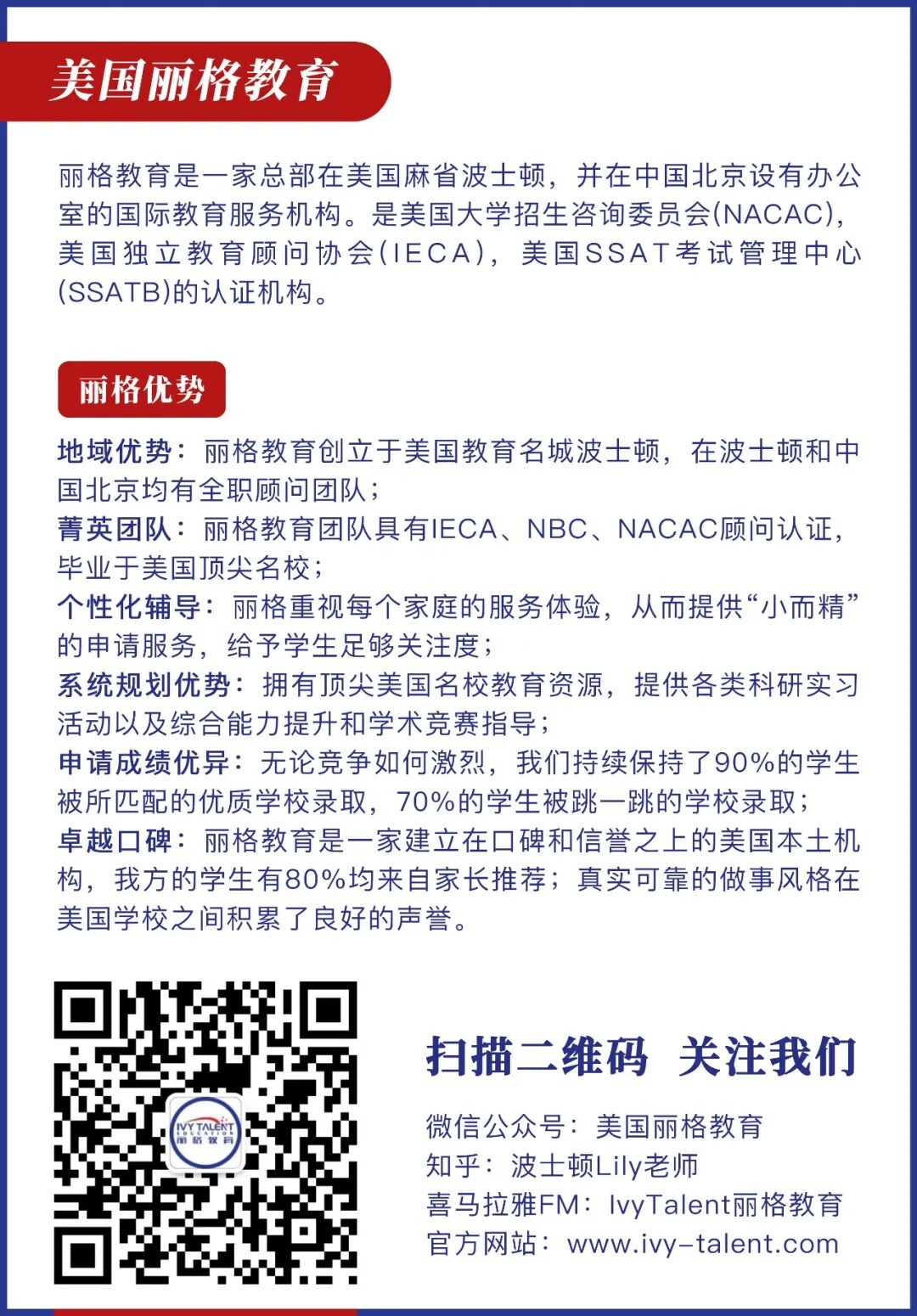 对于学生来说,这是一个自我了解的过程;对于家长来说,这也是一个全面了解孩子的过程。准备申请美初/高的家庭可以参考以上内容进行文书及面试的准备,有其他的问题需要咨询也欢迎和丽格顾问们详细了解哦!