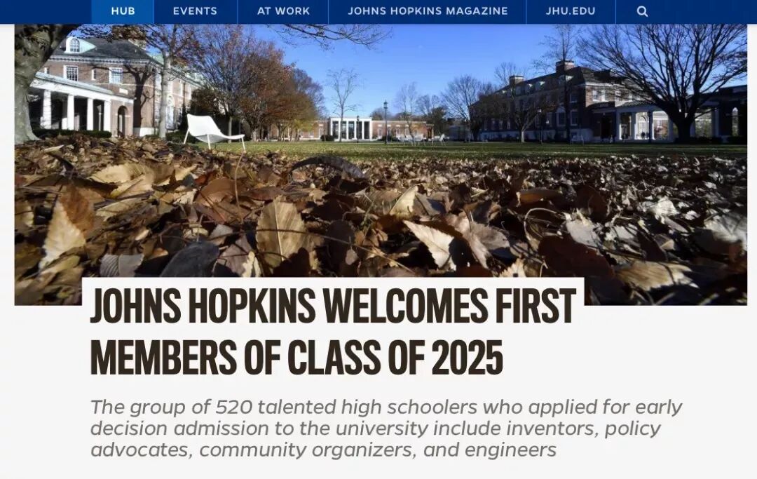 约翰霍普金斯大学也于本周发榜!恭喜丽格学子J同学收获了一枚录取!