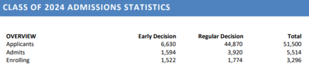 杜克大学招生办预计将会在5000多名申请者中录取800-850名学生。虽然今年的申请人数暴增,但学校预计招收录取的学生人数比往年更少。