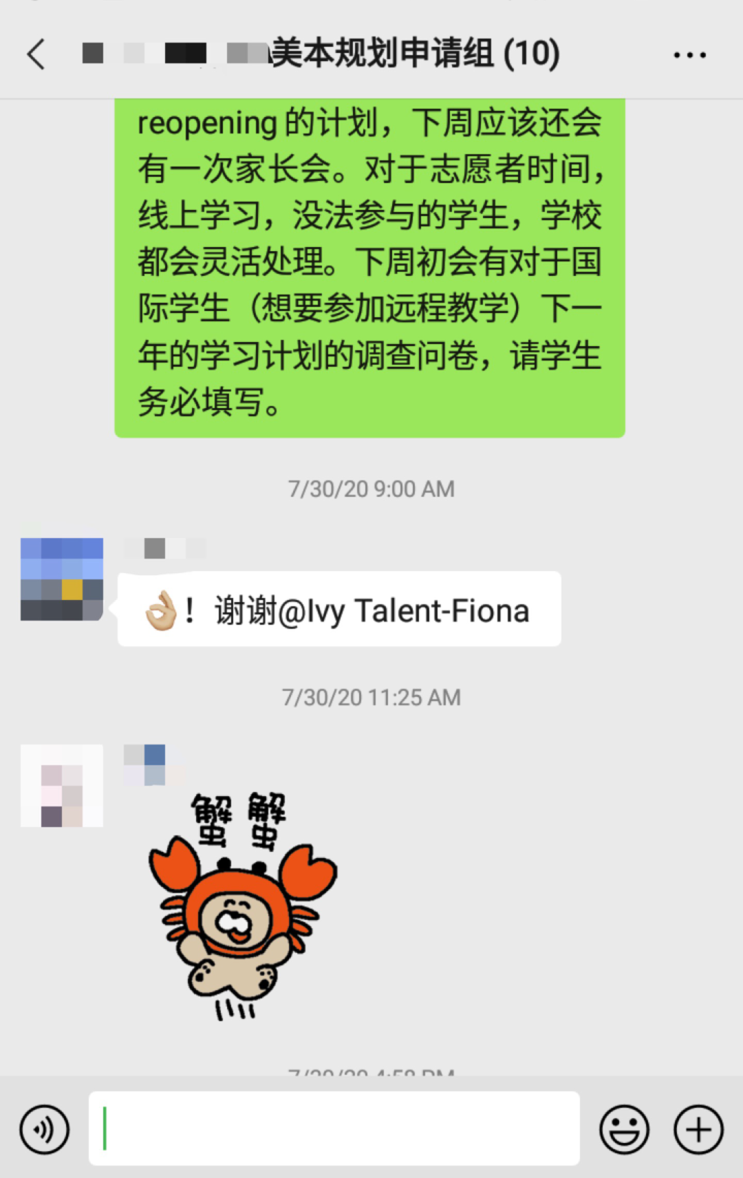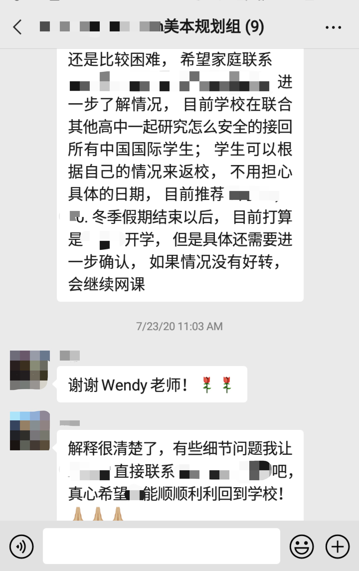 在每日跟进孩子们的学习进度的同时,我们也代表远在国内不方便的家长,参加了各大美初高的家长会,及时将美高学校选课、开学、课外活动等信息反馈给家庭。