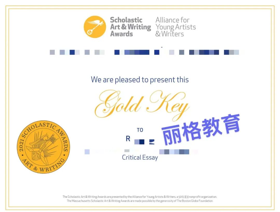 学术艺术与写作奖是全国规模最大、历史最悠久、最负盛名的文学艺术竞赛,旨在寻找7-12年级学生的创意性作品。1923年以来,学术艺术与写作奖认可青年的远见卓识,独创性和才华,并为具有创造性的青少年提供了展现的机会。该奖项是追求卓越的象征,可以为获奖学生的简历增光添彩,增加大学申请和奖学金申请的优势。