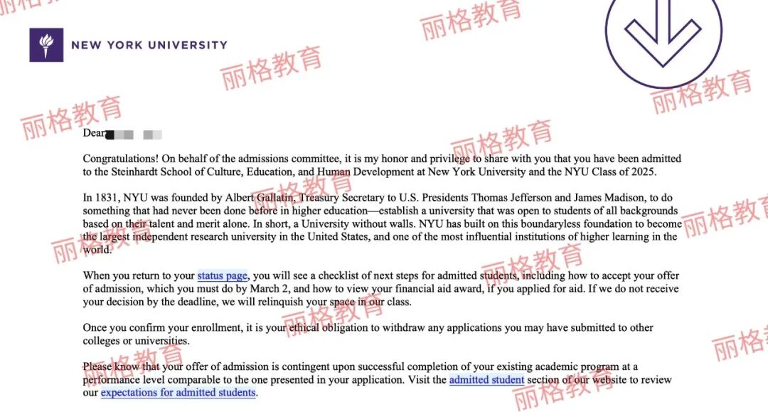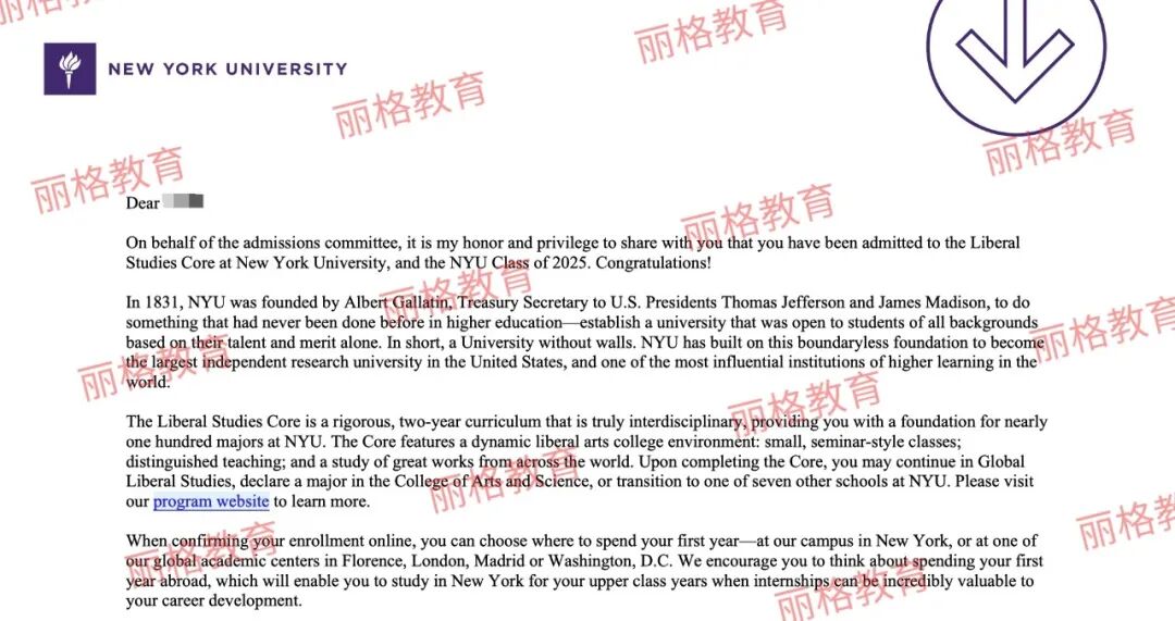 截止2月22日,丽格学子共录取4枚纽约大学Offer。其中ED 2枚,EDII 2枚,录取学院包括商学院,文理学院等在内。
