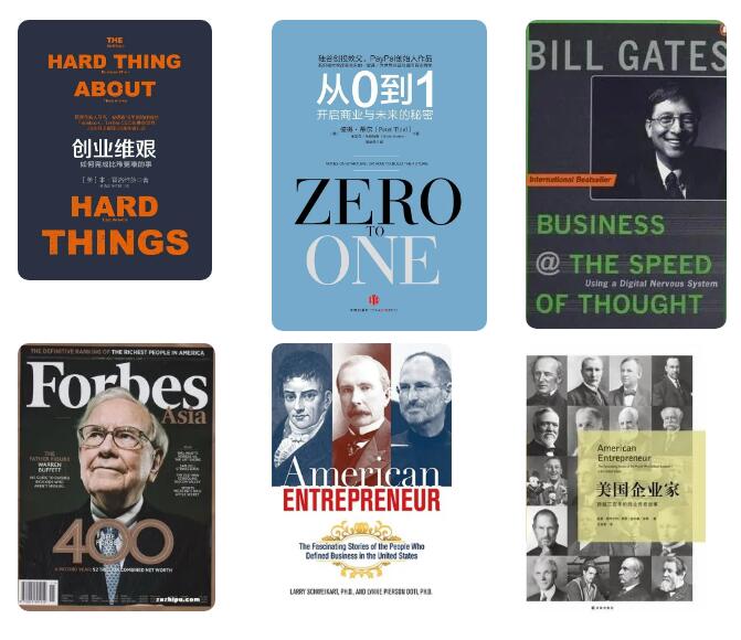 最常用的参考杂志包括:《企业家》(Entrepreneur)、《公司杂志》(Inc.)、《商业周刊》(Business Week)、《快速公司》(FastCompany)、《华尔街日报》(Wall Street Journal)等... ... 最常参考的学术期刊有:《创业理论与实践》(Entrepreneurship Theory & Practice)、《小企业管理》(Journal of Small Business Management)和《商业风险》(Journal of Business Venturing)... ... 一些创业人物的传记或者商业书籍:如《美国企业家:三百年传奇商业史》、《与观念同步的企业、激进分子、幻想家》(比尔·盖茨著)、《从0到1开启商业与未来的秘密》、《创业维艰》、《精益创业:新创企业的成长思维》... ... ▼创业和商业类书籍杂志推荐